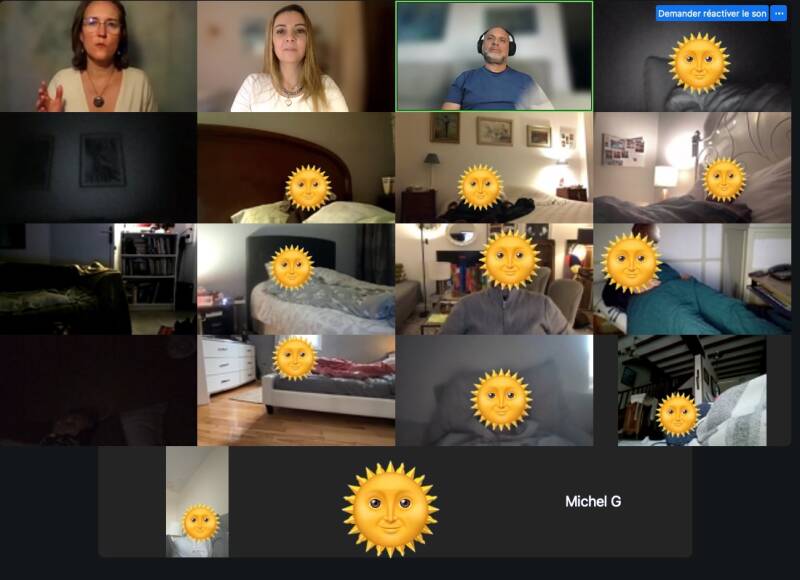 En fin de session, nous avons instauré un temps de parole afin que vous puissiez nous poser des questions et échanger à propos de vos ressentis. Nos séances ne sont pas une sieste, du yoga, de la médiation, une séance de psycho.